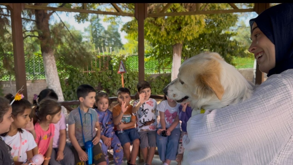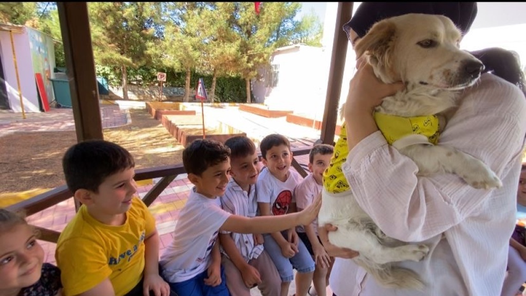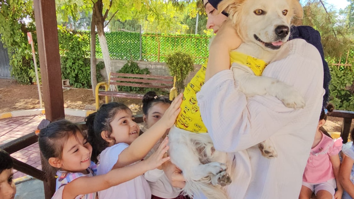 Okulumuz hayvanları koruma gününde hayvan dostlarımız okulumuzu ziyaret etti. Köpek Topak'la oynadılar ve Japon balıklarını alarak sorumluluk bilinci geliştirdiler